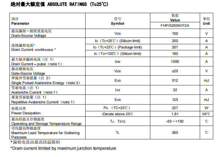 從上述特點(diǎn)可知,這一款工業(yè)級(jí)的250A、100V電流、電壓的FHP250N1F2A場(chǎng)效應(yīng)管型號(hào)參數(shù)是非常適合使用在MPPT控制器的上。